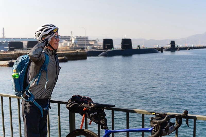 潜水艦以外にも多数の艦船が係留され、タグボートが忙しげに行き来している。呉はかつて世界最大の戦艦“大和”を生み出した街。戦後もまた国防の使命を担い続けているのだ。シシャチョーも何か思うことがあるのだろう。潜水艦を見ながら微動だにもしない。