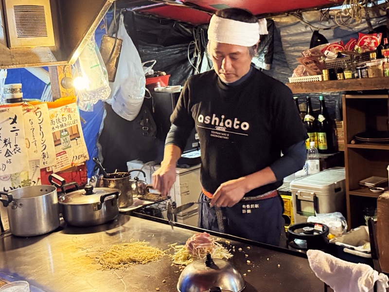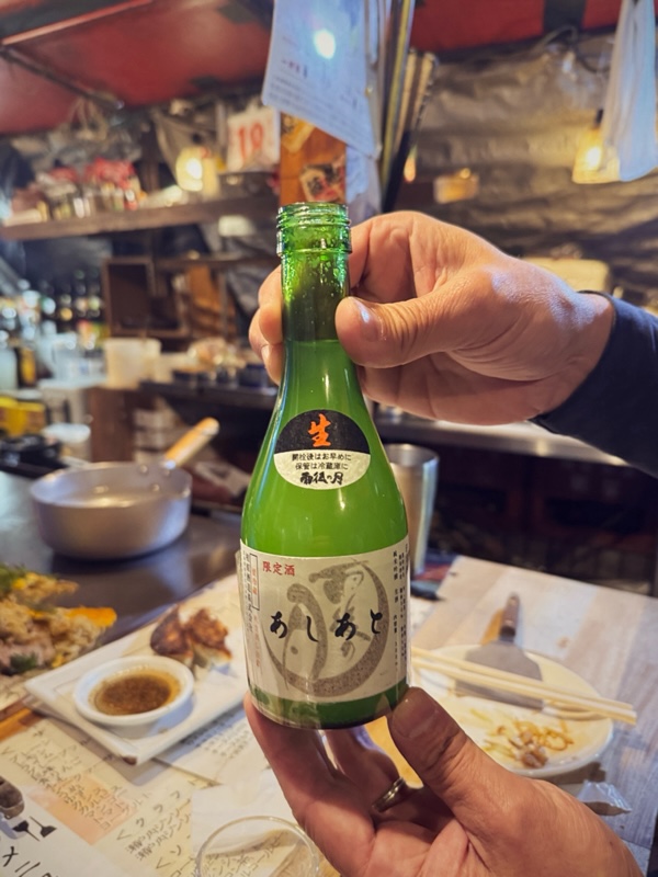 その中で、シシャチョーが事前に調べてくれていた屋台「あしあと」に入る。開店と同時だったがすでに先客がいて、我々は二番目の客となった。