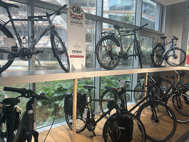 店内にはツーリング向けのeバイクや高品質バッグが並び、生活と旅に寄り添う自転車文化を肌で感じることができた。