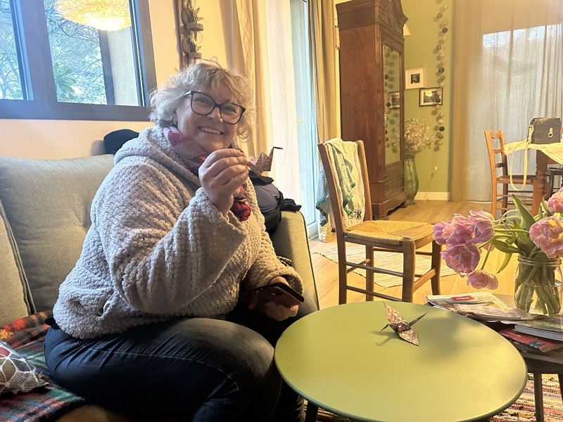 子供たちと折り紙で遊び、「やりたい!」と笑顔で言う姿に、旅先での文化交流の楽しさを再確認した。