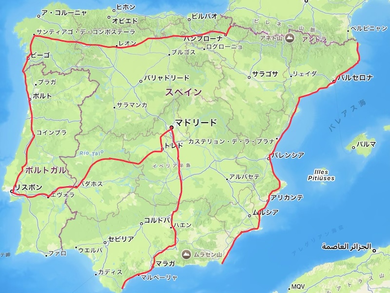 沿岸沿いはアップダウンの多い地形で、ここまで回ったイベリア半島の旅を振り返る。