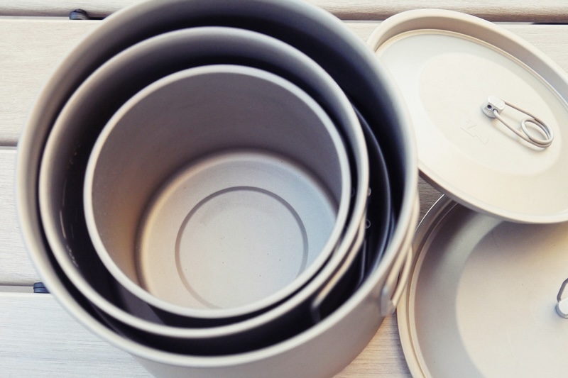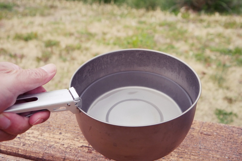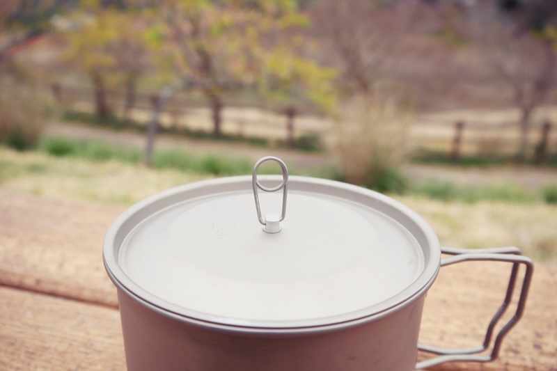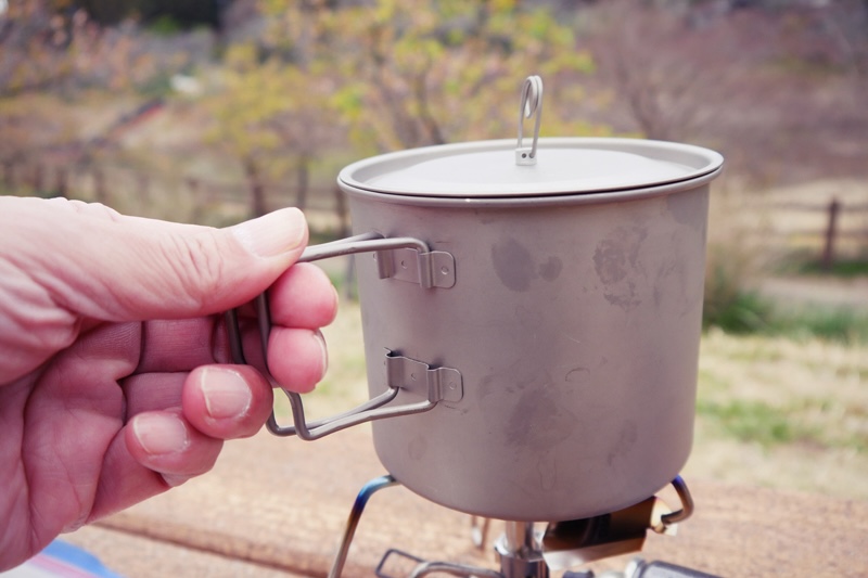 敢えて0.4mmのちょっと厚めのチタンを採用。先に紹介したSOTO/チタニウムポット1100が0.3mm厚で柔らかさを感じるのとは違い、わずか0.1mmの厚さを増しただけで、しっかりとした強度がある。