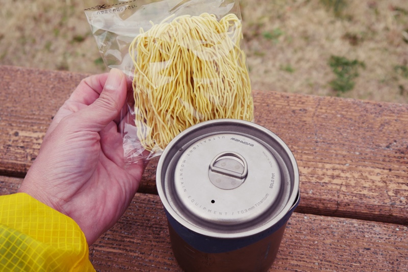 これが浅型クッカーであれば、割り入れる必要がないので、美味しい長さのまま、ズルズルっと啜ってラーメンをいただける。ラーメンケースとして使わないとしても、割らずにインスタントラーメンをつくれることは、浅型クッカーを選ぶ大きな理由になると、ラーメン好きは思うのだ。