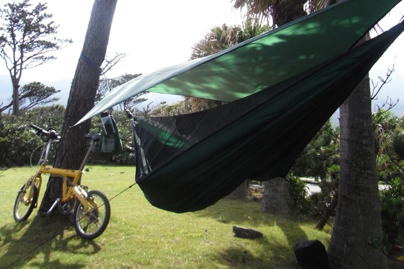 キャンプの基本を表すコトバとしてよく使われる「立つ鳥跡を濁さず」、「来た時よりも美しく」。それはキャンプに限らず、ヒトとしての美しさを自分自身に求めるもの。例えば上画像のようなハンモックテントを使えば、跡さえ残らない。道具選びは、美しさを具現化する戦略の基本。