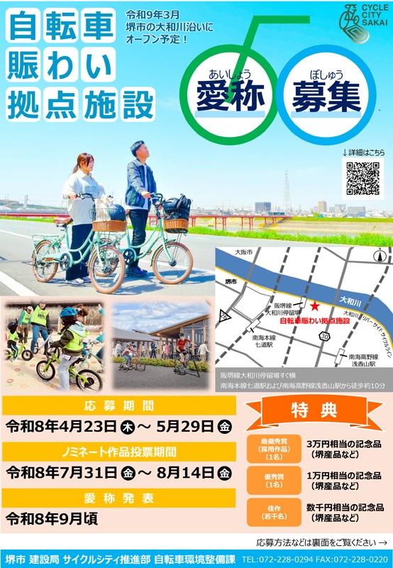 【大阪府】堺市が「自転車賑わい拠点施設」の愛称を募集