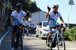 ゴールセレモニー(左より神野一仁(こうの・かずひと)愛媛県副知事、 自転車新文化基金會の羅祥安(トニー・ロー)会長) 2019.10.10 ゴールセレモニー(左より神野一仁(こうの・かず... このフォトが使われている記事へ > ツイート シェア 関連フォト