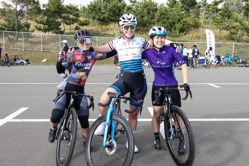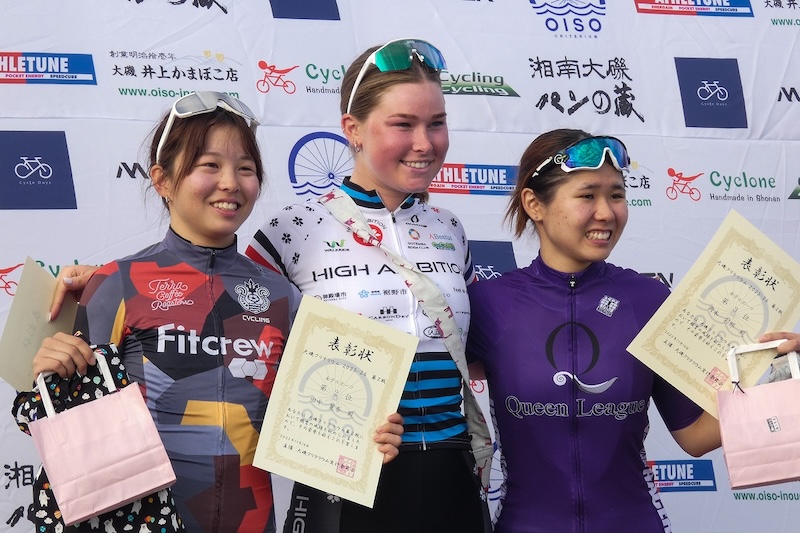 アスリチューンQリーグのポイントリーダー授与式では改めて、今回の女子スポーツが参加人数、実力ともに勢揃いとなったレースの印象を聞いたところ「今まで走った大磯クリテのなかで、一番楽しいレースでした!」と笑顔で答えてくれた。
