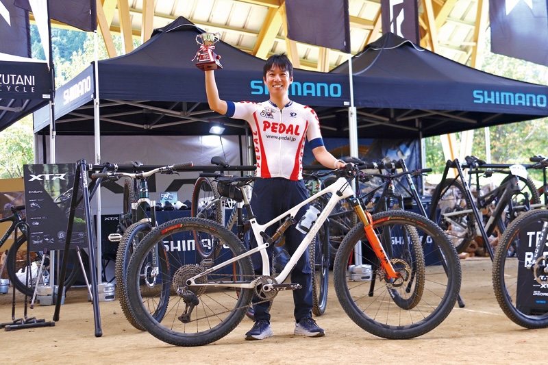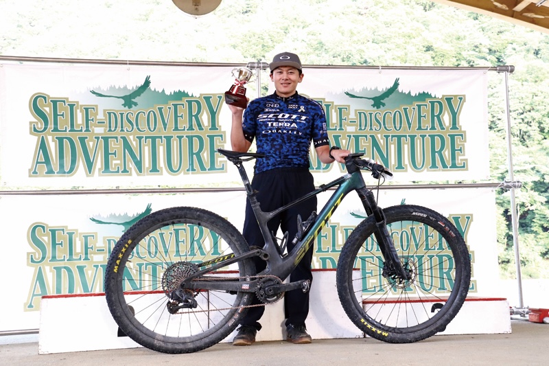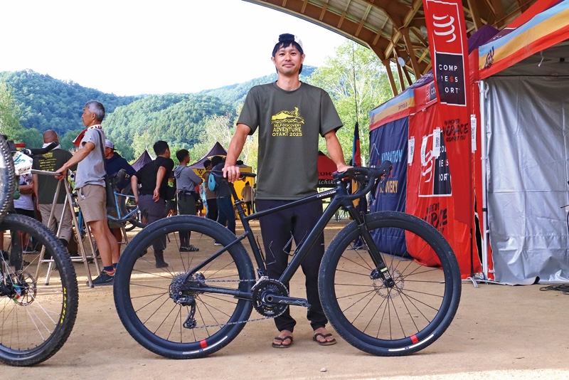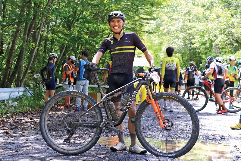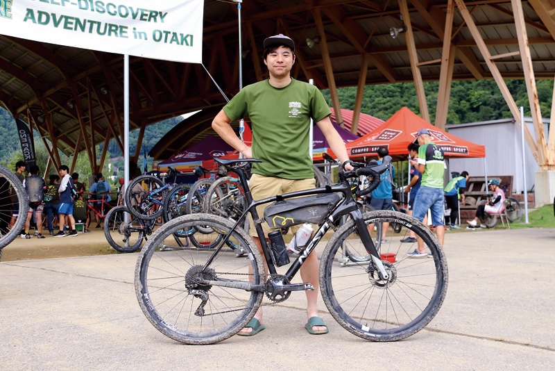 筑波山のガレた林道で鍛えた経験を武器に、「ロンググラベル」カテゴリーへ初参戦し見事優勝した斉藤健太氏。アルミのトップストーンに、ドロッパーポストやサスペンション、パンク防止のインサートでカスタム。空気圧は前後1.4barと低めに設定し、王滝のガレ場に最適化した。