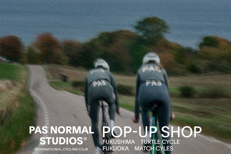 サイクルウェアブランドPas Normal Studios(パスノーマルスタジオ)のAW25ポップアップショップが、福島県富岡町のサイクルショップ「タートルサイクル」と、福岡県嘉麻市の「マッチサイクル」で開催される。開催日はそれぞれ2025年10月25日(土)から11月3日(月・祝)まで、10月30日(木)から11月9日(日)までだ。2025秋冬コレクションを会場で確かめよう。