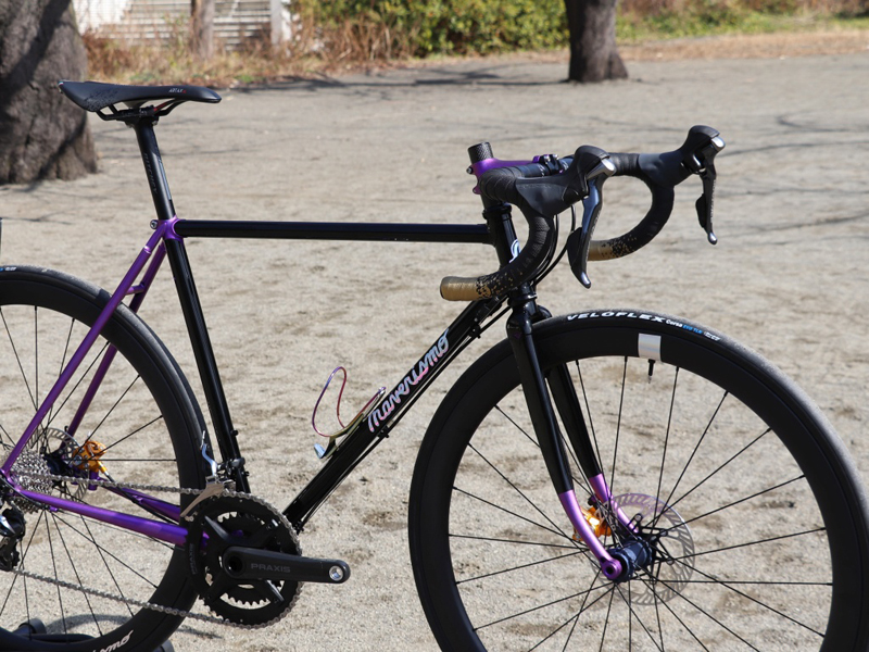 ホイールの試乗は、原則として自分のバイクに移し替えて行うが、サイクルキューブのオリジナルクロモリバイク「MAVERISMO(マーベリスモ)」に、イコールブレーキとコントロールレバーを装着した試乗車も用意される