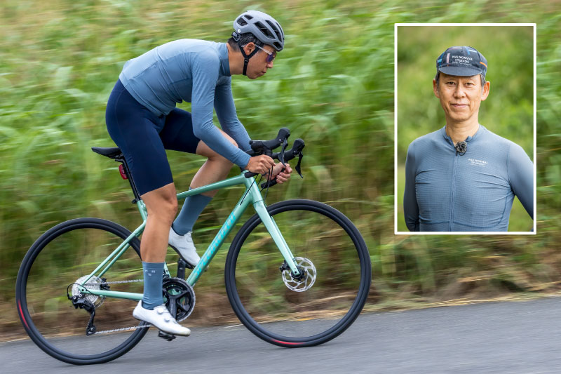 インプレッションライダー① フィールドサイクル代表・野中秀樹さん 2025年6月に練馬区にオープンした「フィールドサイクル」の代表。国内自転車メーカーに勤務した実績、ツーリングから実業団レースまで走った豊富な経験を下に、鋭い視点で今回のインプレバイクを評価した