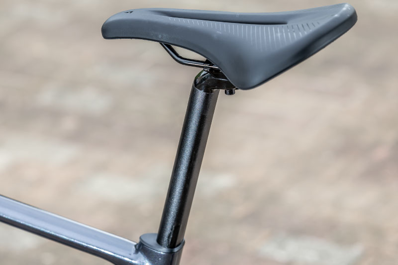 シートポストはD型の断面形状を持つ「Dフューズ」仕様。横剛性はそのままで、前後方向にしなることで乗り心地を高める効果がある。同社のディファイシリーズから受け継ぐ構造だ