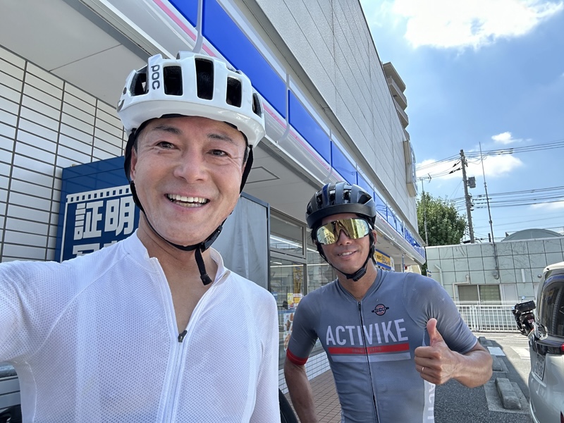 2時間ほど走りあっという間に半分の50km地点の武蔵五日市のコンビニに着いた。ここで補給をする。西谷さんはライド中の補給はとても大事だと言う。私は今までトレーニング中は「水」だった。これだとエネルギーが全然足りないらしい。今年からエナジー系のドリンクを飲みながらトレーニングをしているが、なるほど最後までタレることなく効率的にトレーニングができて強くなれる。最後まで「踏める」脚をつくるわけだ。ツール・ド・フランスなどでもエナジー系の補給ドリンクが進化したおかげでレーススピードが格段に上がったと言われている。また新たに勉強になった。